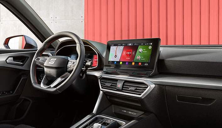 Den fås bl.a. med 10" infotainment system* med fuldt tilpasselig skærm og stemmestyring. Hold dine hænder på rattet og fortæl din Leon Sportstourer, hvad du har brug for.